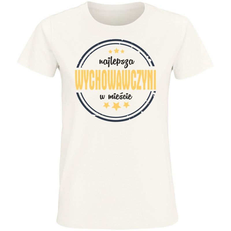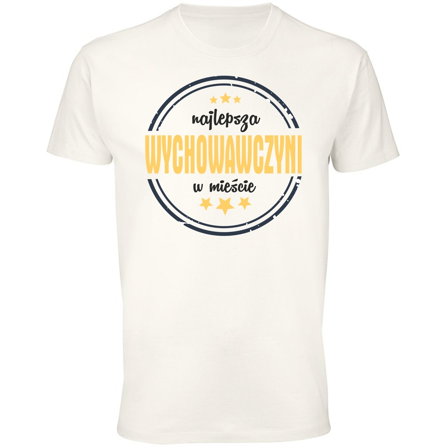 Pokaż wszystkim, że jesteś najlepsza, bez względu na okoliczności! Nasza koszulka z hasłem „NAJLEPSZA WYCHOWAWCA W MIEŚCIE” to idealny sposób, aby wyrazić dumę i poczucie humoru. Styl graficzny nawiązuje do klasycznych pieczęci i odznak, co nadaje koszulce niepowtarzalny, vintage’owy charakter. To idealny prezent dla nauczycielki, wychowawczyni lub po prostu dla każdej kobiety z poczuciem humoru. Zapewniamy, że w tej koszulce będziesz się czuć wyjątkowo i przyciągniesz spojrzenia! Niezależnie od tego, czy prowadzisz klasę, wspomagasz dziecko w domu, czy po prostu chcesz pokazać swój charakter, ta koszulka wyrazi to doskonale. Postaw na styl i wygodę – wybierz naszą koszulkę i pozwól, aby Twoja osobowość zabłysła!