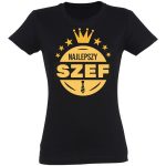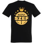 Poczuj się jak król biznesu z naszą nową koszulką! Ten wyjątkowy design to połączenie retro klimatu z nowoczesnym poczuciem humoru. Centralnym punktem grafiki jest złoty medal z napisem „NAJLEPSZY”, otoczony iskrzącymi się złotymi gwiazdami. Pod spodem, na czarnym tle, znajdziesz słowo „SZEF”, a na dole subtelny detal – ikona krawata, dodająca całości szczyptę elegancji. Ta koszulka to idealny wybór dla osób ceniących sobie styl, humor i odrobinę autoironii. Idealna na spotkania biznesowe, imprezy z przyjaciółmi, a nawet na relaks w domu. Wyraź swój status i poczuj się wyjątkowo każdego dnia!