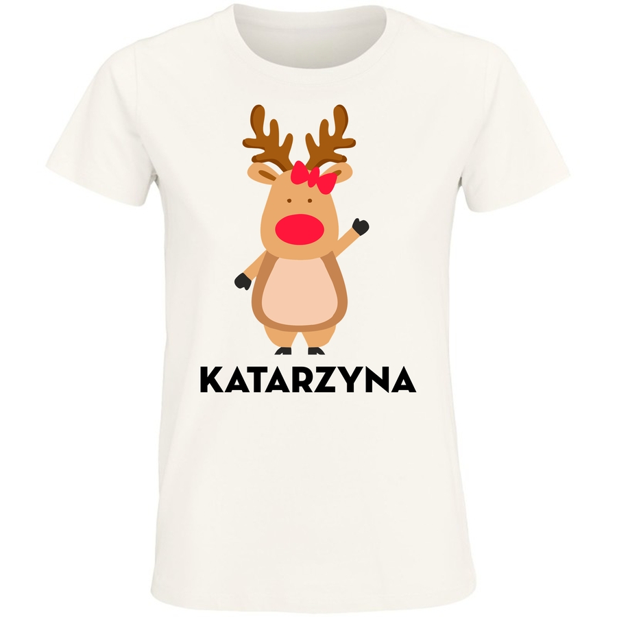 Poczuj się wyjątkowo i podaruj sobie komfort! Nasza koszulka z uroczym reniferem Katarzyną to nie tylko stylowy akcent, ale przede wszystkim gwarancja komfortu. Wykonana w 100% z bawełny, zapewnia przyjemne uczucie na skórze i odporność na częste prania. Dzięki trwałemu nadruku, Katarzyna będzie towarzyszyć Ci przez długi czas, niezależnie od okoliczności.