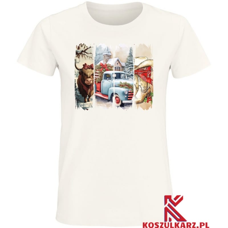 Podróż do świątecznej przeszłości – Ta Urocza Zimowa Koszulka prezentuje piękny, zimowy pejzaż z klasycznym samochodem i świątecznymi akcentami. Idealna dla tych, którzy cenią sobie nostalgiczne obrazy i świąteczne motywy.