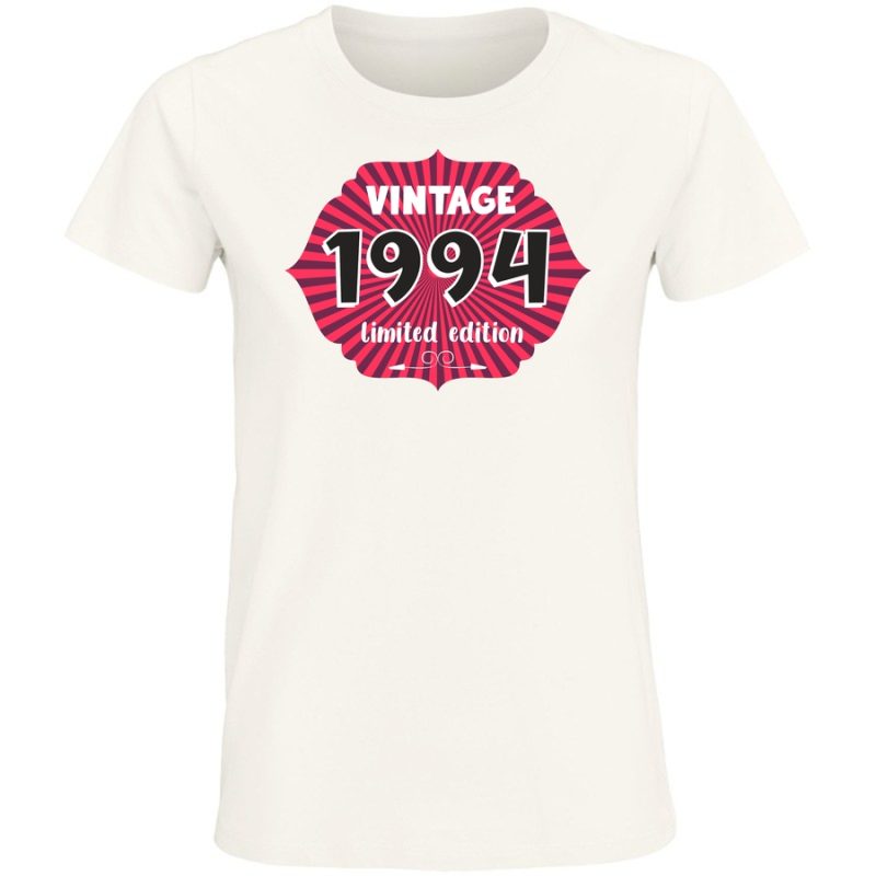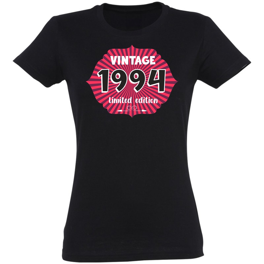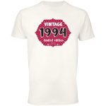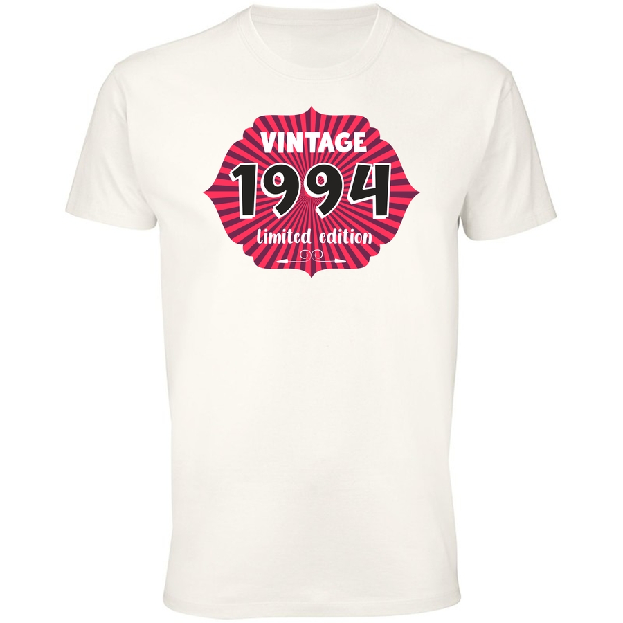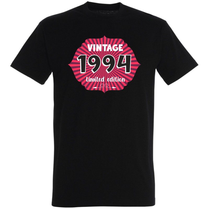 Przenieś się w czasie z naszą limitowaną edycją koszulki z motywem „Vintage 1994”! Ta wyjątkowa grafika to hołd dla minionej epoki, stylizowana na klasyczne plakaty z lat 90. Duże, wyraziste napisy „VINTAGE” i „1994” w połączeniu z charakterystycznym wzorem promieni i wyraźnym „limited edition” spra…