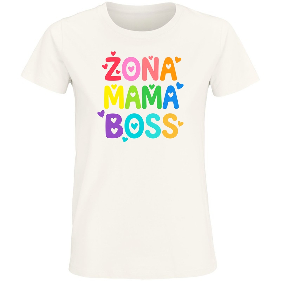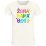 Pokaż światu, jaka w tobie tkwi! Nasza nowa koszulka „Żona Mama Boss” to idealny sposób, aby z dumą wyrazić swoją mocną pozycję i kochające serce. Grafika w stylu retro, z grubymi, kolorowymi literami i uroczymi sercami, emanuje pozytywną energią i dobrym humorem. „Żona”, „Mama”, „Boss” – te słowa w radosnej palecie barw mówią same za siebie. To koszulka, która podbije serca wszystkich aktywnych i zabieganych mam, które wiedzą, jak pogodzić obowiązki i zachować styl. Bądź sobą, bądź silna, bądź mamą, która rządzi! Zaskocz bliskich i znajomych swoim wyjątkowym stylem, który wyraża twoją osobowość i codzienną siłę. Ta koszulka to idealny prezent dla mamy, babci, siostry lub przyjaciółki – dla każdej kobiety, która wie, czego chce i jak to osiągnąć. Wyraź swoją niezależność i urok osobisty z naszym wyjątkowym nadrukiem. Poczuj się wyjątkowa i zyskaj mnóstwo komplementów!